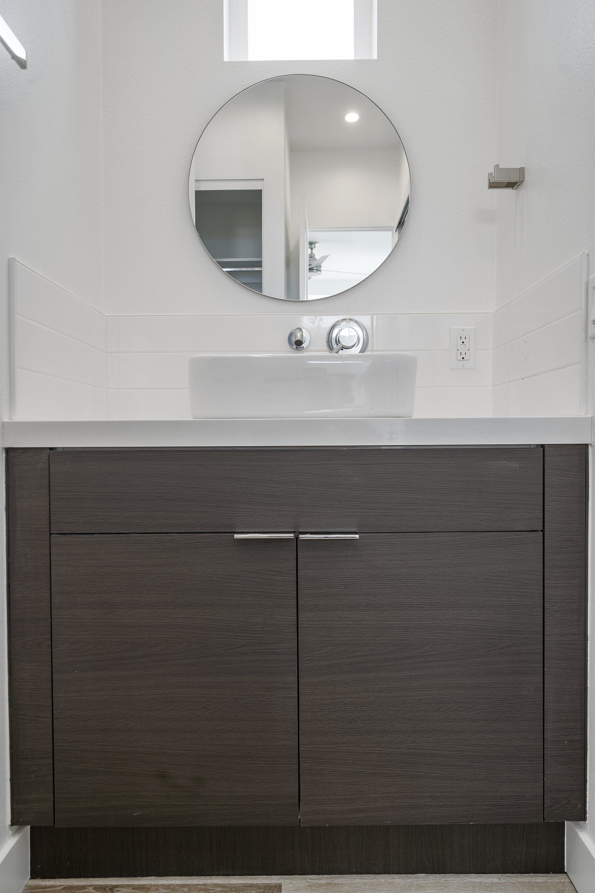 There are multiple standalone vanities that fit into various bathroom themes. These can be found from your local Home Depot or Lowe's or even at online retailers and are a great option for an easy solution. They can be in the form of cabinet + countertop combination, a cabinet without a countertop or sink, or even just a standalone sink with no cabinetry underneath.