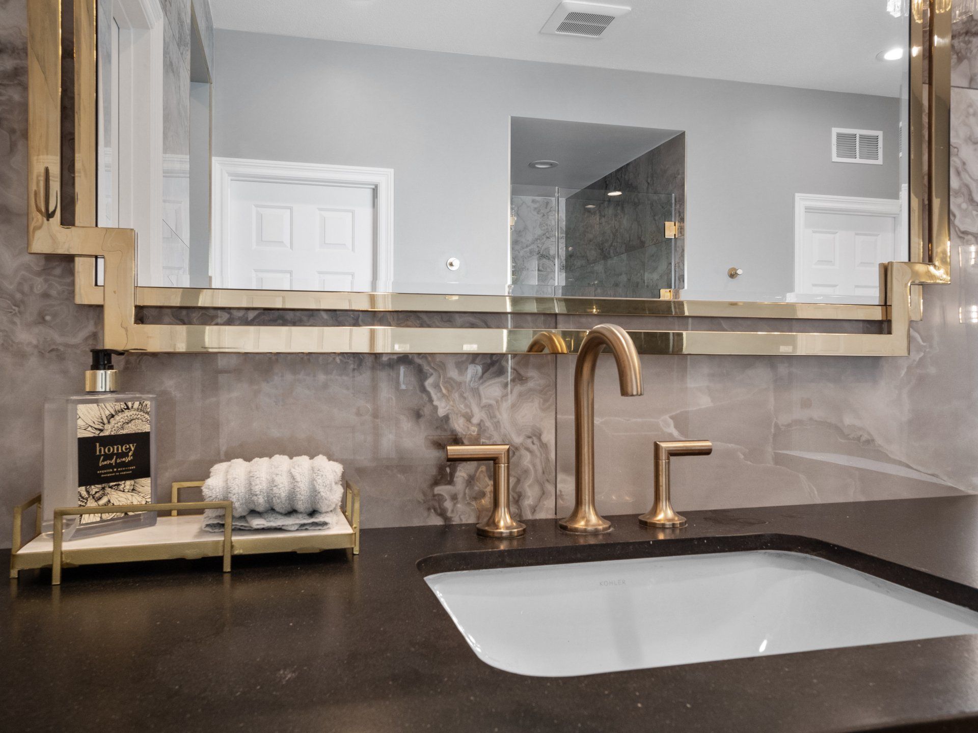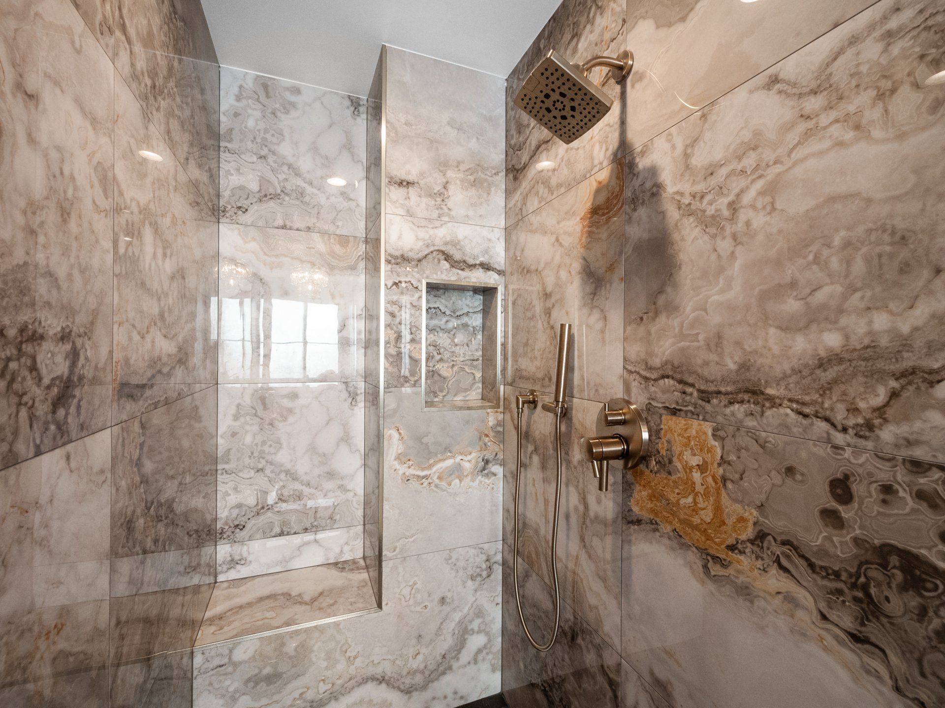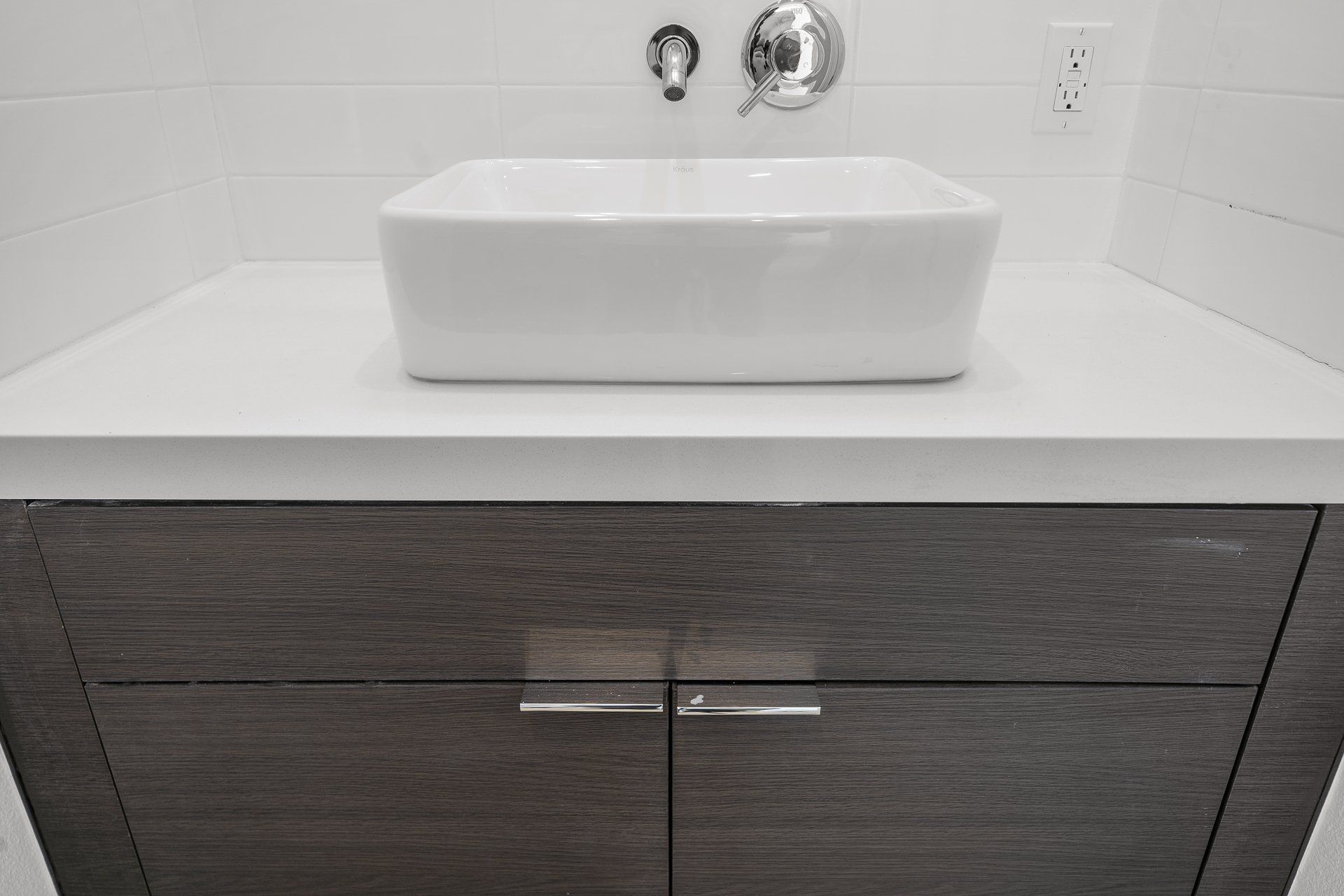 Amongst built-in countertops, there are several choices in the material as well. The most common options for bathroom countertops are quartz, granite, and quartzite. See our countertops section in our kitchen remodeling page to understand the differences between these types of material.