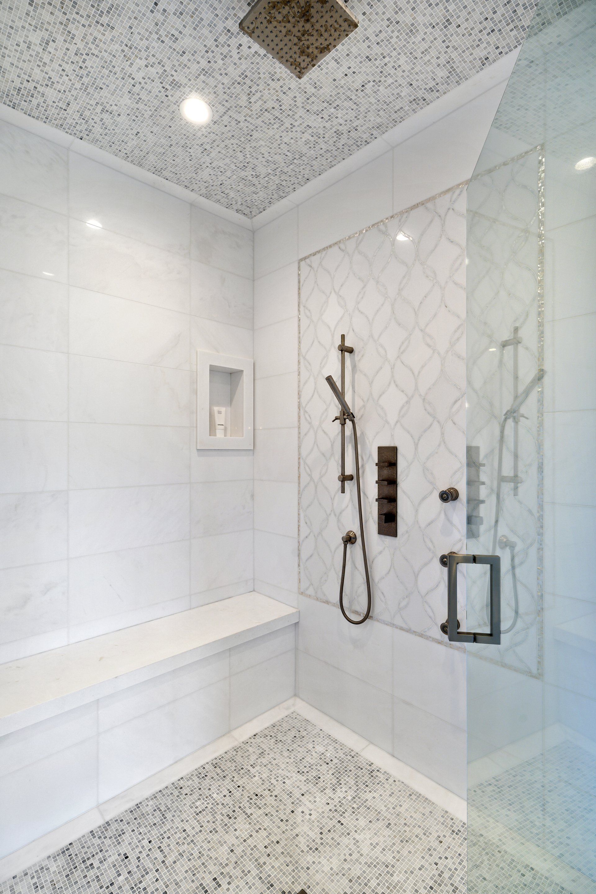- Rain Shower Head - this shower head comes down directly from above the head (as opposed to coming from an angle in typical shower heads). While aesthetically pleasing, there are limitations to these types of shower heads, including limited spray pattern options. They're also generally lower pressure, so it doesn't provide the massage-like feel with higher pressured shower heads. Installing piping into the ceiling is also more labor-intensive and will be more costly.