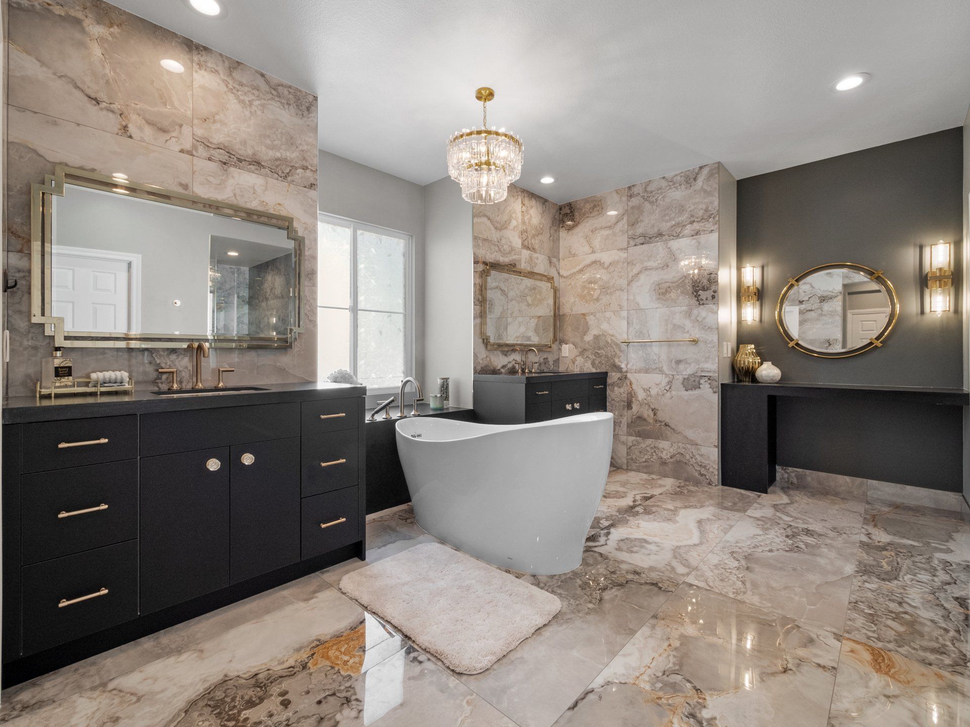 A bathroom remodeling project can be overwhelming with the number of options and styles available. We have an extensive portfolio of different themed bathrooms, from classic and retro to contemporary and modern. We've renovated countless bathrooms so we know what goes well together and are happy to make recommendations to you. See below for some examples of the different options available.